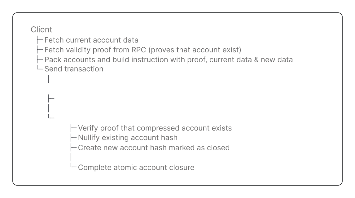 | Close Compressed Accounts | Close compressed accounts, retain the address |